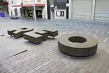 Kawe Reo / Voices Carry, a 2011 sculptural bench outside the Auckland Central City Library that incorporates poetry by Sullivan