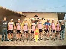 That year the team, sponsored by Gianni Motta, became the first U.S. team to enter the 1984 Giro d'Italia,[11][12]Giro di Puglia, Giro di Toscana, Giro del Trentino and Tour de Suisse and other European races.
