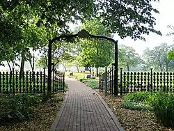 Rock Island National Cemetery is a United States National Cemetery located within Rock Island Arsenal near the city of Rock Island, Illinois. Administered by the United States Department of Veterans Affairs, it encompasses 66 acres (27 ha), and as of the end of 2006, had 24,525 interments.[2] The cemetery is also nearing compliance with the National Shrine guidelines, due to its use of college students during the summer to reset and realign stones. When looking from any one stone there should be seven lines visible and all should be straight.