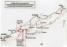 In 1955 and 1964 Henri Lhote had visits of several months to the region which allowed him to complete his former researches, to add hundreds of new descriptions and in 1970 to publish Les gravures rupestres du Sud-oranais in the series Mémoires du Centre de recherches anthropologiques préhistoriques et ethnographiques (CRAPE) directed at Algiers by Mouloud Mammeri.[1] A notable part of the work was particularly devoted to the engravings of the El-Bayadh region. For Henri Lhote the South Oran region constitutes one of the "three great centres of art of the antelope age"[2]: 194 with Tassili ("Oued Djèrat") and Fezzan.
