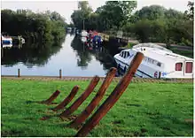 Rockland staithe with remnants of a Norfolk wherry in foreground