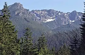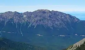 Rocky Peak is a 6,218 feet (1,895 m) summit in the Olympic Mountains and is located in Clallam County of Washington state. It is situated eight miles south of Port Angeles, Washington within Olympic National Park. Its nearest higher peak is Mount Angeles, 1.87 mi (3.01 km) to the west.[1] Klahhane Ridge connects these two peaks. Travelers on the scenic Hurricane Ridge Road traverse the lower south slope of Rocky Peak en route to the Hurricane Ridge visitor center. The mountain was named Rocky Peak by local people from the time of the earliest settlers in the area.[2] Precipitation runoff from the north side of the peak drains into Rocky Creek, whereas the south slope drains into Morse Creek, thence into the Strait of Juan de Fuca.