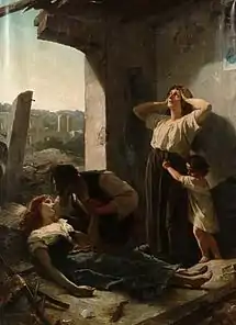 Among his works: Consolatrix afflictorum ; The Guardian Angel and Death of Raphael. In 1884 at Turin, he exhibited Episode after 1883 earthquake at Casamicciola and The Aurora of July 29, 1883. In 1887 at Venice, he displayed: Tre sorelle. He also made many portraits. He was made a knight of the Order of the Crown of Italy.[2]