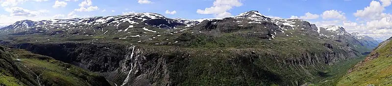 Panorama showing much of the Sørdalen canyon seen from the east