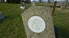 Another example of old graveyard custom is teacher Chr. Johansens gravesite from 1897. Here a black and white photo of Chr. Johansen is embedded into the gravestone. This is in contrast to the picture-free gravesite norm in Denmark today, even though this is not the case several other places in the world, where photos of the deceased can be a central part of a gravesite.[1]