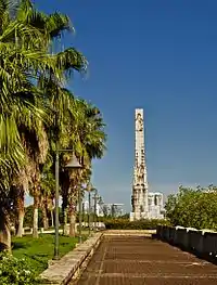 The cities of Bayamón, Juana Díaz, San Germán and San Juan have honored the memory of Baldorioty de Castro by naming plazas after him.[27] Puerto Rico Highway 26, called the Román Baldorioty de Castro Expressway, is the main highway to the Luis Muñoz Marín International Airport. In Puerto Rico's capital city, where the Baldorioty de Castro Expressway meets the Condado Lagoon in the Miramar neighborhood of Santurce, an obelisk was constructed in the center of the city park surrounding the lagoon. The obelisk is in honor of Baldorioty de Castro. A bronze statue of Baldority de Castro stands at the base of the statue as a gift of the people of Puerto Rico.[28] There are schools named after him in other areas of Puerto Rico. The province of Azua de Compostela, Dominican Republic, honored him by naming one of the capital city's secondary education institutions after him: Liceo de Estudios Secundarios Román Baldorioty de Castro.