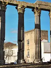 The Roman Temple of Évora (Portuguese: Templo romano de Évora), also referred to as the Templo de Diana (albeit wrongly, after Diana, the ancient Roman goddess of the moon, the hunt, and chastity) is an ancient temple in the Portuguese city of Évora (civil parish of Sé e São Pedro). The temple is part of the historical centre of the city, which was included in the classification by UNESCO as a World Heritage Site.[1][2] It represents one of the most significant landmarks relating to the Roman and Lusitanian civilizations of Évora and in Portuguese territory.