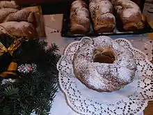 - Mucenici/sfințișori - sweet pastries (shaped like "8", made from boiled or baked dough, garnished with walnuts, sugar, or honey, eaten on a single day of the year, on 9 March)[27]