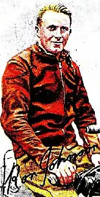Johnson emigrated to Australia with his parents when he was just a child. He started racing at the Claremont Speedway in Perth, Western Australia in 1927 (the same year the venue first held racing), before his travelling to the UK with promoter Johnnie Hoskins in 1928 to start a career with Crystal Palace. Johnson initially struggled on British tracks that were half the size of the ones he was used to (the Claremont Showground, which doubled as the speedway, was some 550 metres (600 yd) in length, while other Australian tracks of the day, usually showground tracks, ranged from 450 metres (490 yd) to 610 metres (670 yd) in length).[5][6] In 1931, he won the British Match Race Championship, defeating Claude Rye, retaining the title against Syd Jackson before losing it to Tiger Stevenson.[7] In 1933 he was runner up in the Star Riders' Championship, the forerunner of the Speedway World Championship.[7]