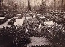 In the city of Berlin a Liebknecht-Luxemburg Demonstration, shortened to LL-Demo, is organised annually in the month of January around the date of their death. This demonstration takes place on the second weekend of the month in Berlin-Friedrichshain, starting near the Frankfurter Tor and then to their graves in the central cemetery Friedrichsfelde, also known as the Gedenkstätte der Sozialisten (Socialist Memorial).[68] In East Germany, the event was widely considered to be a mere show for Socialist Unity Party of Germany politicians and celebrities, which was broadcast live on state television.[69]