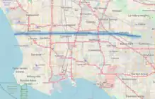 Rosecrans Avenue is a major west-east thoroughfare in Los Angeles and Orange Counties, California, USA. It has a total length of 27.5 miles (44.3 km). The street is named after U.S. Union General William S. Rosecrans, who purchased 13,000 acres (5,300 ha) of Rancho Sausal Redondo southwest of Los Angeles in 1869.[1][2] Rosecrans Avenue was originally named Drexel Avenue, and ran through the Rosecrans Rancho which is part of modern-day Gardena.