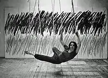 Rosemarie Castoro (born in Brooklyn, New York, United States; 1939 – 2015) was an American artist associated with the New York Minimalists. She worked in drawing, painting, sculpture, and other media.[1] She was associated with Minimalism, Conceptual art, and concrete poetry.[1] Castoro was a practitioner of monochrome painting and abstraction. Movement of the human body through physical space was a recurring theme in her work.