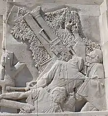 Part of the memorial's carved reliefs, showing gunners operating a trench howitzer