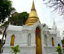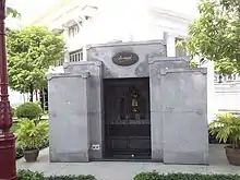 Among the many monuments in the grounds are four prominent white buildings, each dedicated to one of King Chulalongkorn's four principal wives. They also contain the ashes of descendants of the wives to whom they are dedicated. These four structures are listed below with their designated memorial numbers in parentheses. The interred include: