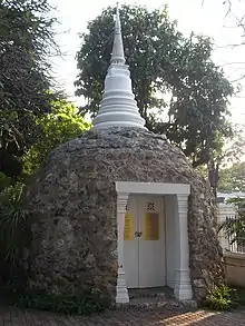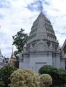 Referred to as the "Little Temple," it is a single story, four-walled house of European style, with a tiled roof. The wooden doors and windows feature stained glass panels. Within are housed the ashes of two consorts of King Rama V from the Bunnag family (Pae and Mod) and their descendants. These include: