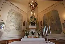 In this village is a historic Roman Catholic church dedicated to St. James the Apostle it is subsidiary to the parish church in Żegocina. Of wooden construction, typical of this part of Poland, the building dates back to the 15th century, and originally stood in Królówka. It was renovated from the funds of Zygmunt August - the king of Poland. In this church stayed King of Poland - Władysław IV. It was transported to its current location in 1986.[5][6][7] The building is on the Wooden Architecture Trail.[8]