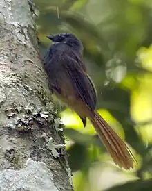 The rufous-tailed fantail (Rhipidura phoenicura) is a species of bird in the family Rhipiduridae. It is endemic to Java in Indonesia. Its natural habitat is subtropical or tropical moist montane forests.