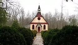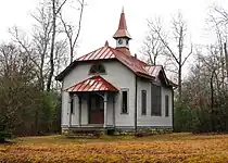 The Christ Church Episcopal was established on October 5, 1880, and initially used the original Rugby schoolhouse for services. The current building was built in the Carpenter Gothic style in 1887 by Cornelius Onderdonk, who constructed many of the original buildings in Rugby, and consecrated by Episcopal bishop Charles Quintard in 1888.[8] The church's alms basin was designed by English carpenter Henry Fry, who had previously done work for various churches in the London area. The church's reed organ, built in 1849, is one of the oldest in the United States.[9] The Christ Church parish has met here regularly since 1887.