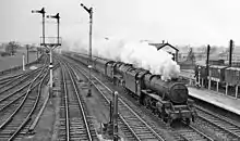 From the mid-1960s until 1998, it was served only by local stopping trains between Stafford and either Rugby or (from 1987) Coventry[1][2] – these were withdrawn in 2004 when work began to upgrade the main line to four tracks, with bus replacements operating until London Midland introduced the present semi-fast service between London Euston and Crewe via Stafford in 2008.