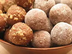 Rum balls are a popular Christmas treat in England, Australia, Canada, Germany, New Zealand, the United States, Austria, Slovenia, Hungary, Greece and the Czech Republic. In Denmark they are enjoyed year round and known as either romkugle, trøffel or sputnik, depending on the specific region.[1] In Poland, also not necessarily associated with Christmas, the rum ball is known as bajadera (not to be confused with a Croatian confection of the same name).
