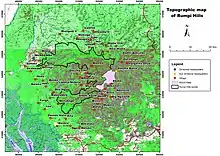 The reserve is composed of land belonging to the Ngolo, Bima and Balue tribes, the first two form part of the North West while the latter, forms part of the South East area. Most of the villages are on top of the hills, so that, a more or less vertical climb of anything up to 400 meters has to be faced before reaching a village or settlement.[6]