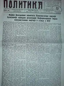 48. "Resolution of the Information Bureau Concerning the Communist Party of Yugoslavia". wikisource.org.