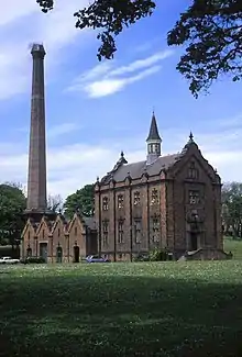 The Grade II* listed building is a popular landmark in Ryhope and is based at The Ryhope Pumping Station, operational for 100 years before closing in 1967. The building is more or less Jacobean in style with curving Dutch gables, and a tapering octagonal brick chimney. The historian of British industrial architecture Hubert Pragnell calls it a "cathedral of pistons and brass set within a fine shell of Victorian brickwork with no expense spared".[1]