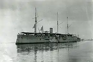 While São Gabriel circumnavigated the world, her sister ship, São Rafael took an active part in fighting for the Republicans in the 5 October 1910 revolution by shelling the Terreiro do Paço and the Palácio das Necessidades.[2] In 1911, while on patrol at the mouth of the Ave River she suffered ran aground, tearing out her bottom on the rocks. Only one casualty was sustained among the crew.[5]