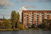 Vester Søgade is dominated by Vestersøhus which was designed by Kay Fisker and C. F. Møller and completed in 1939. With its balcony-bay window concept, it became a model for later Danish residential architecture.[4] The building was listed in 1994.[5]
