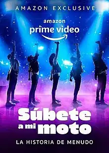 Súbete a Mi Moto is a biographical streaming television series about the Latin boy band Menudo. The series narrates the history of the band from its creation to its evolution and international success. Menudo was the band that launched music stars such as Ricky Martin and others.[1] Consisting of 15 episodes of 60 minutes each, the series premiered on Amazon Prime Video on October 9, 2020, in Mexico, Latin America, and Spain. In the United States, the series premiered on Estrella TV on February 14, 2021.[2][3]