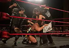 At Final Battle 2009, on December 19, Kevin Steen betrayed and began a feud with his former tag team partner El Generico, turning heel in the process.[1] In 2010, Steve Corino joined Steen against Generico and Colt Cabana.[2][3] At Final Battle 2010, on December 18, Steen lost a match against Generico that resulted in his departure from ROH.[4] Prior to the outcome, on November 4, 2010 at an ROH taping, Kevin Steen's contract agreement with Ring of Honor ended due to financial budget concerns, which ultimately played a role within the stipulation of the match.[5] Corino soon turned face and introduced his ally Jimmy Jacobs, both claiming that they were good people that could reach out to Steen, and asked ROH for a second chance for Steen.[6] However, Steen, who wanted to redeem himself but was opposed by ROH and its security that came to evict him from the building, ended up turning on Corino upon his return at Best in the World 2011 on June 26, sparking a revolt against ROH which fell into conflict with Executive Producer Jim Cornette, who vowed to rid the company of Steen. Furthermore, Steen threatened legal action if he was not reinstated, leading to Steen ultimately defeating Corino on December 21 at Final Battle 2011 to win a contract from ROH.[7] At Showdown in the Sun weekend, on March 30, 2012, Steen defeated El Generico, with help from Jimmy Jacobs in a Last Man Standing match. On May 12 at Border Wars, Steen defeated Davey Richards to win the ROH World Championship for the first time. Following the match, Corino entered the ring and hugged Steen and Jacobs, as the three men went on to form a stable later named S.C.U.M. (Suffering, Chaos, Ugliness, and Mayhem).[8][9][10]