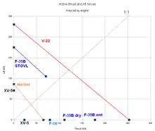 Comparison of lift and thrust for various aircraft