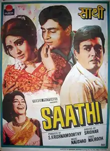 Saathi (transl.Partner) is a 1968 Indian Hindi-language romance film written and directed by C. V. Sridhar. The film stars Rajendra Kumar and Vyjayanthimala, with Simi Garewal, Pahari Sanyal, David Abraham Cheulkar, Veena and Ram Mohan as the ensemble cast while prominent actors such as Shashi Kapoor, Nanda, Sanjeev Kumar, Shabnam, D.K. Sapru and Pratima Devi made guest appearances. The film was produced by S. Krishnamurthy and T. Govindarajan of Venus Pictures. The film's score was composed by Naushad with lyrics provided by Majrooh Sultanpuri. It was edited by N. M. Shankar and filmed by Marcus Bartley.