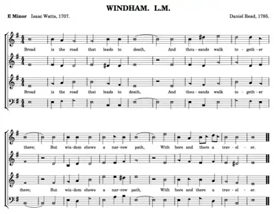 Windham (38b) from the Sacred Harp, showing the four-shape notation and the traditional oblong layout