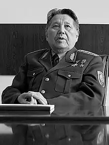 He was awarded Kazakhstan's highest official award, the newly established honorary title of Hero of Kazakhstan, in 1994  the first Kazakh to attain the honor.[3] He was an adviser to Nazarbayev from 1995 to 1996.[1] He died on 24 September 2013.[4]