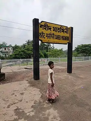 The Sahid Matangini railway station in the Indian state of West Bengal, serves Tamluk-Panskura Road, Tamluk, India in Purba Medinipur district. It is on the Panskura–Haldia line. It is 88 km (55 mi) from Howrah Station and 21 km (13 mi) from Panskura.[5]