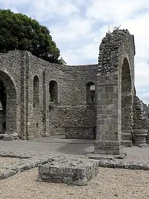 All that is left of the original cathedral at Aleth are ruins as seen in the photograph shown here. When in 1144 the bishopric was transferred to Saint Malo, Aleth put itself under the protection of Saint-Servan. [16]