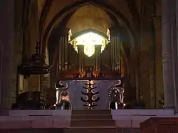 The pipe organ was built in 1977 by Koenig and inaugurated in 1980. It is composed of four keyboards, one pedal, and 35 stops. This organ replaced an older one built in 1893 by the Nantes born Louis Debierre in the romantic style, which was destroyed in 1944. A new choir organ of two keyboards, one pedal, and 18 stops built by Koenig was added in 2014.[9]
