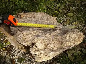 On its western side the upwarp is traversed by a North-South-striking fault zone, which separates the Piégut-Pluviers granodiorite from the paragneisses. This fault zone starts at Lacrète (commune of Étouars) in the South and terminates just south of Massignac in the North.