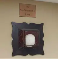 The basement contains a recreation room, which was named the Pope Benedict XVI Room in the 2000s. Cardinal Ratzinger met with then-Rector Richard Pates in that room on a seminary visit in the 1970s. On display in the room is a zucchetto of Pope Benedict XVI, given to a seminarian from SJV who visited Rome and extended a new one to the Pope as he passed by; the Pontiff then exchanged the new one for his own.