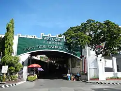The Saint Jude Catholic School campus in the district of San Miguel in Manila is composed of four buildings on a 2.5-hectare (6.2-acre) lot. These include the Prep School Building, the S.J. Building, the Fr. Peter Yang Building and the new Fu Shen Fu Building. The National Shrine of Saint Jude Thaddeus is located within the school's campus.[2][3]