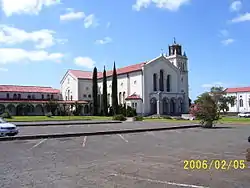 A school was opened in September 1930, built with wood salvaged from the old Saint Louis College on River Street. The school was staffed by the Sisters of the Sacred Hearts and started with three grades. Eventually, the school consisted of eight grades and a kindergarten. With the increasing population in Kaimuki, the school was expanded to a double school in 1943, due to the efforts of two carpenter religious, Brothers Sylvester Barbe, SS.CC., and Wenceslaus Van Vorst, SS.CC. In January 1950, a fire destroyed the auditorium and all but two classrooms. Father Lawrence Mampaey, SS.CC., immediately set out to rebuild the school with the assistance of volunteers and parishioners. By summer of 1950, a new 16-classroom building designed by architect Edwin L. Bauer and built by Pacific Construction Company was showcased during an open house.