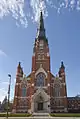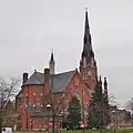 The new building was designed by the architectural firm of Wing & Mahurin in the High Victorian Gothic style. By September 15, 1889, a large church had been erected. On December 3, 1903, a major fire left it in ruins. Reconstruction was soon underway, and by April 1905 it had been restored to its former glory. During the late 1940s the church underwent renovation and has had other improvements and enhancements as time went on.[2][3]