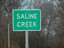 The stream's original name - La Rivière de Saline - is French meaning The River of the Saltworks and refers to the two natural salt springs found in the area, which also gave name to the nearby creek and its tributaries called Saline Creek or Saline River. The French colonials knew Saline Creek as La Rivière de la Saline or La Petite Rivière de la Saline. The Spanish referred to the creek and its tributaries as Las Salinas.[2][3]
