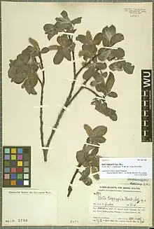 Salix coggygria is a low shrub in the willow genus Salix with 1.5 to 4.5 centimeter-long leaf blades. The natural range of the species is in China.