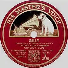 "Sally" is a popular song written by Leo Towers, Harry Leon and Will E. Haines. It was first sung by Gracie Fields in the 1931 film Sally in Our Alley.[1][2][3] "Sally" was released on His Master's Voice as the B-side of the record "Fall In and Follow the Band".[4]