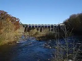 Salmon River Reservoir, also known as the Redfield Reservoir, is a man-made lake located near the hamlet of Redfield, New York. The reservoir was created with the completion of a hydroelectric dam in 1912. It has the capacity to hold 56,000 acre-feet (69,000,000 m3) of water.[2][3] It is the larger of the Salmon River's two reservoirs.