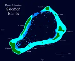 The Salomon Islands or Salomon Atoll is a small atoll of the Chagos Archipelago, British Indian Ocean Territory.