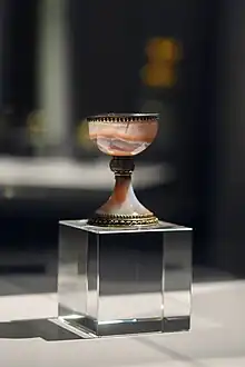 Greek artifacts from the classical period in the shape of small bowls are often called salt cellars. Their function remains uncertain, though they may have been used for condiments including salt.[6] The Romans had the salinum, a receptacle typically of silver and regarded as essential in every household. The salinum had ceremonial importance as the container of the (salt) offering made during the meal, but it was also used to dispense salt to diners.[7]