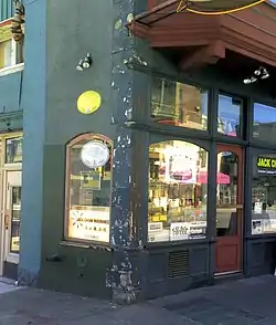 The Sam Kee Company—originally owned by one of the wealthiest businessmen in Vancouver Chinatown, Chang Toy (also known as Sam Kee)—purchased the standard-sized lot in 1903. In 1912, however, Vancouver widened Pender Street and expropriated 24 feet (7.3 m) of the above-ground portion of the property—effectively (or so it was first believed) making conventional commercial use of the remaining frontage impractical, if not impossible. After Toy refused a neighbour's offer to buy the remaining land, someone bet him that he couldn’t use the land for anything. In 1913, the architects Brown and Gillam designed this narrow, steel-framed building. Its ground-floor depth (from storefront to rear of building) measures 4'11" (1.50 m), with a second-floor depth (from overhanging bay window to rear) of 6' (1.83 m). The basement extends beneath the sidewalk and originally housed public baths, while the ground floor was used for offices and shops and the top story for living quarters.[2]
